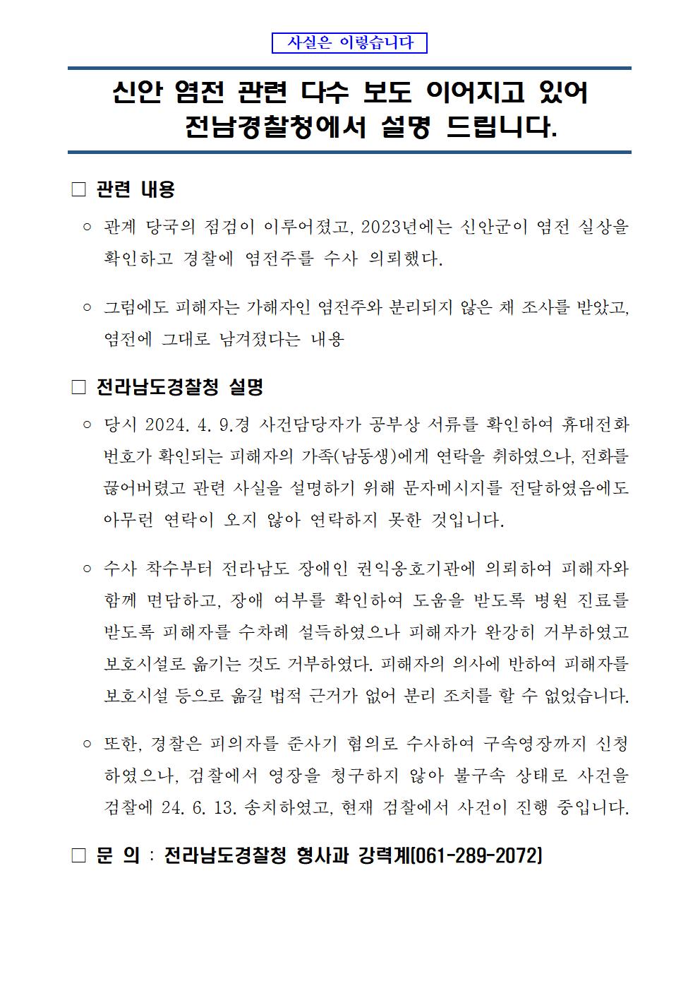 [전남청] 신안 염전 착취 관련 전남경찰청에서 설명드립니다.