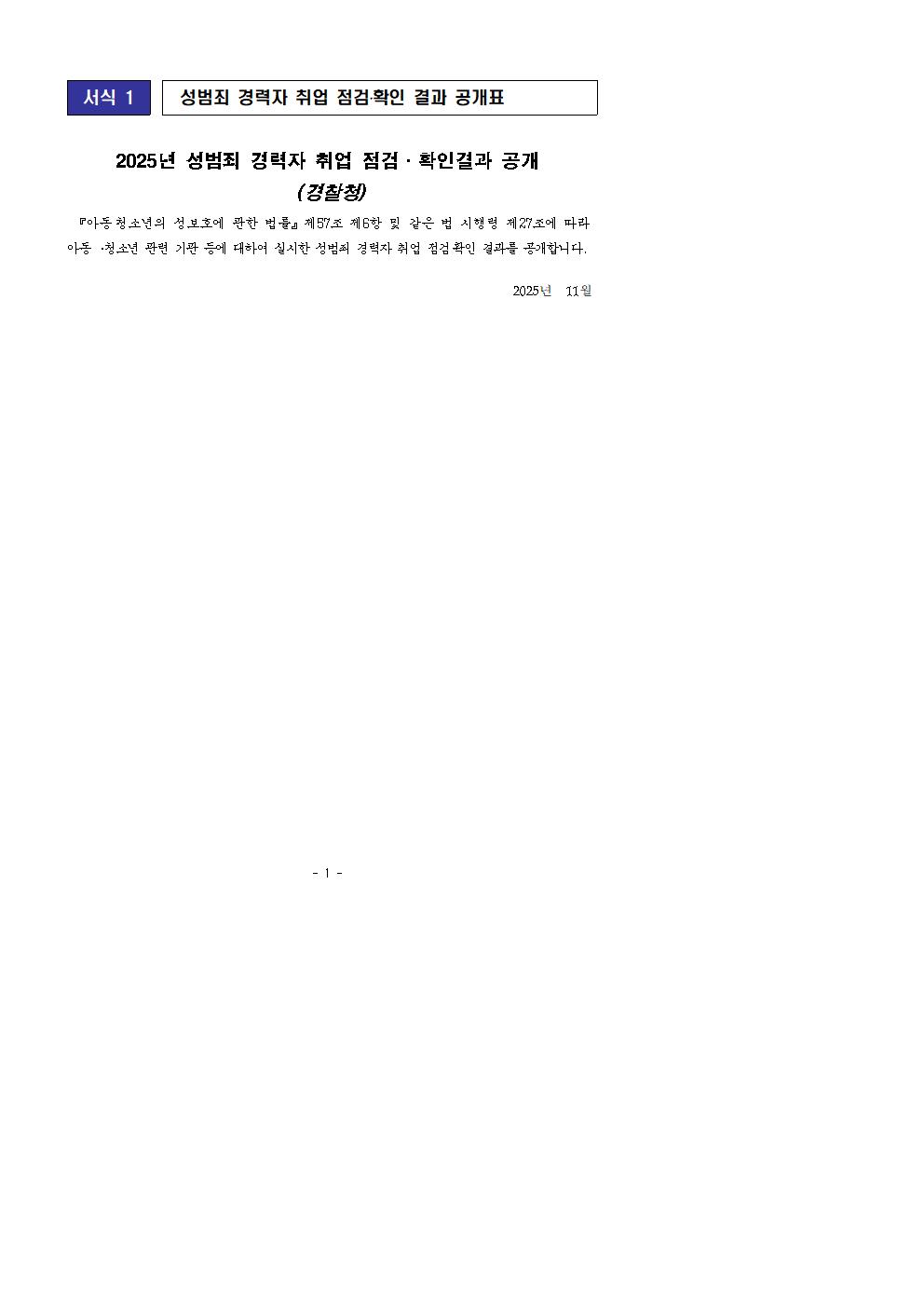 2025년 성범죄 경력자 취업 점검 확인 결과 공개
