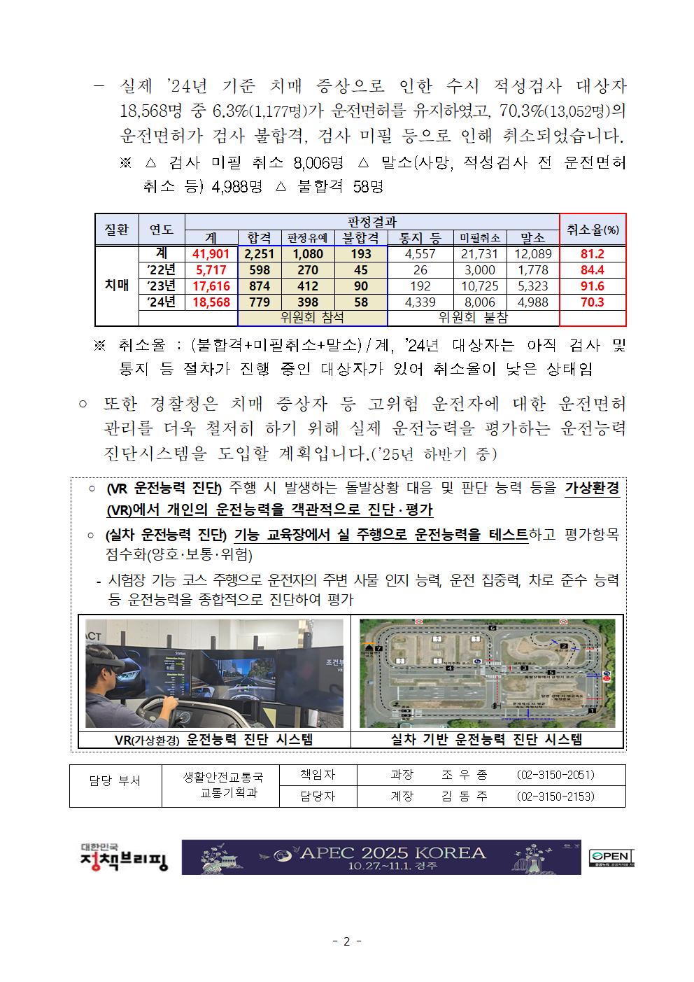 경찰청은 치매 증상자 등 고위험 운전자에 대한 운전면허를 철저하게 관리해 나갈 계획입니다