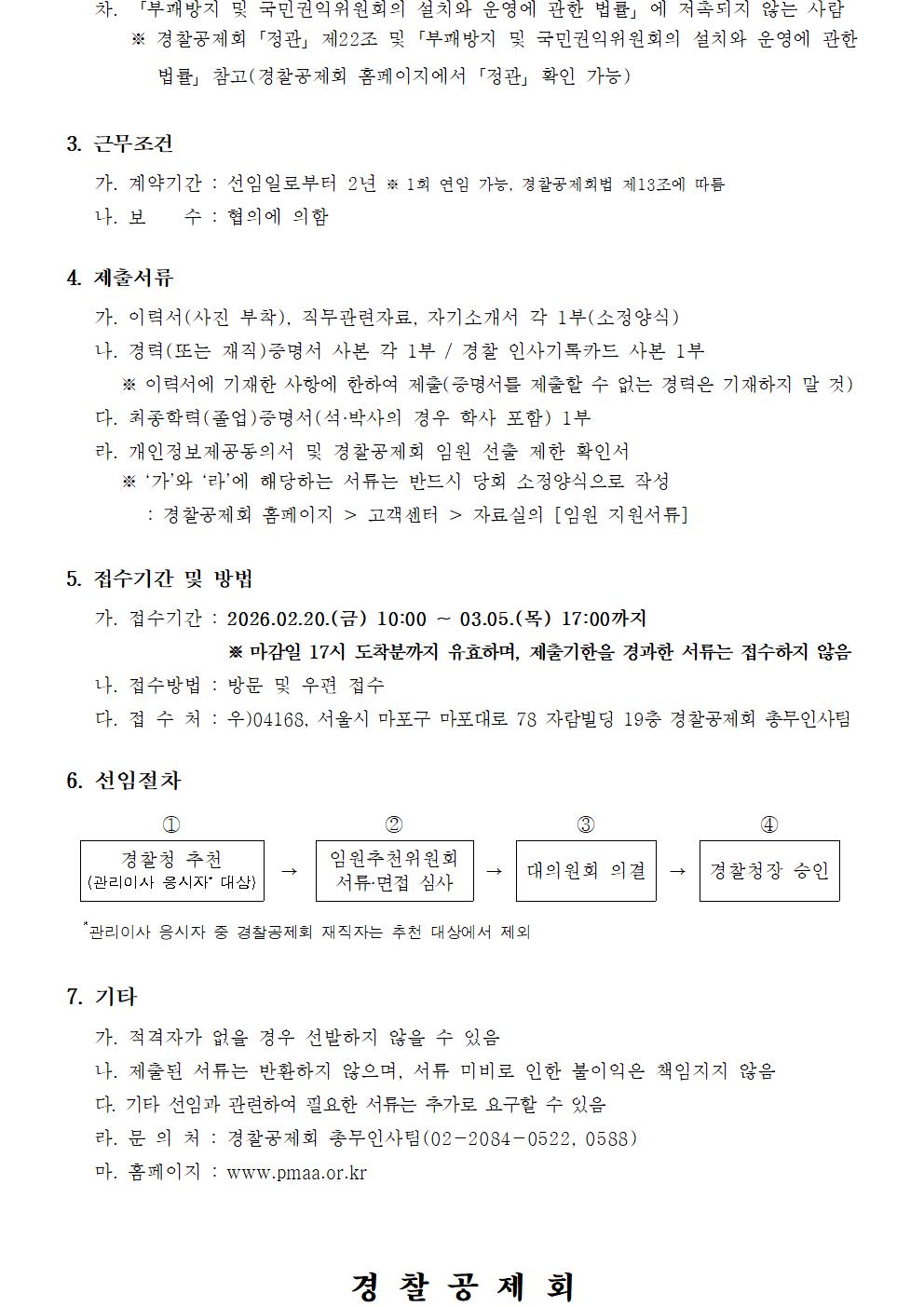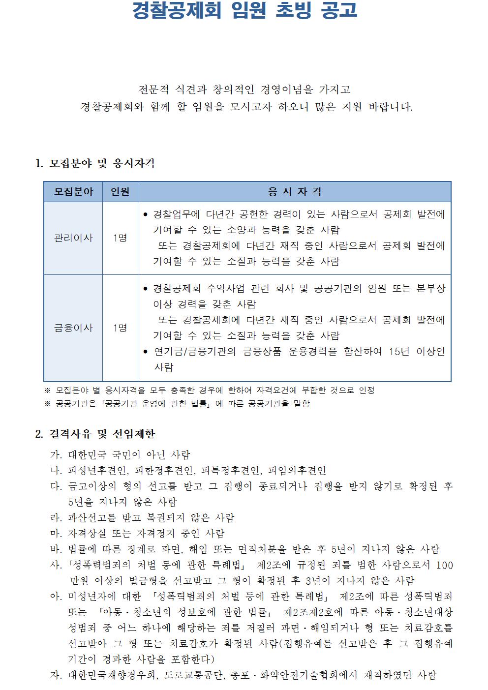 경찰공제회 임원(관리이사, 금융이사)초빙공고